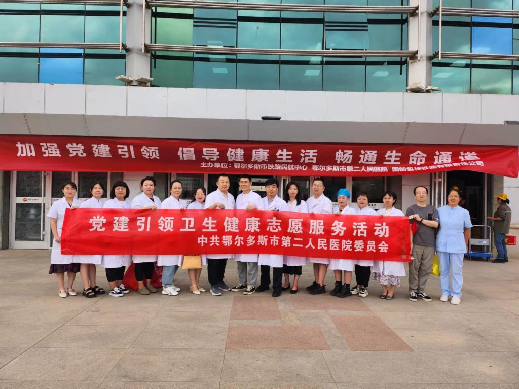 2024年6月19日,鄂尔多斯市第二人民医院联合鄂尔多斯市铁路民航中心、国能包神铁路有限责任公司在东胜区旧火车站开展以“加强党建引领 倡导健康生活 畅通生命通道”为主题的党建引领卫生健康志愿服务义诊活动。