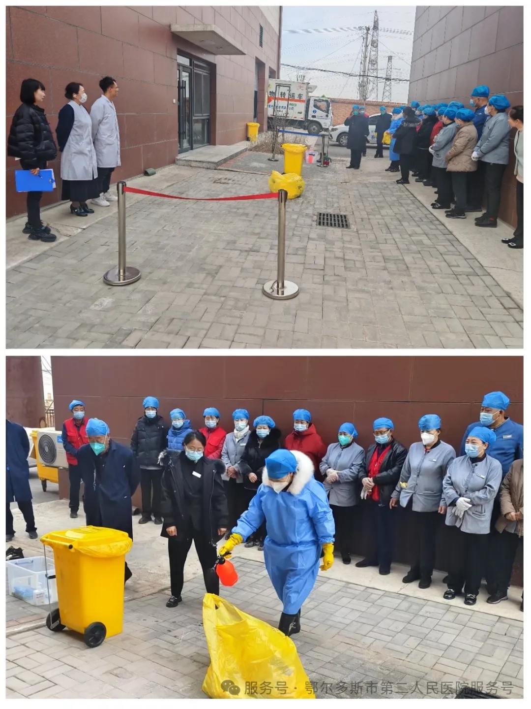 为了检验和提高我院应对医疗废物泄露事件的应急反应能力、组织协调能力和现场处置能力。2025年3月14日市第二人民医院组织开展了医疗废物泄露处置应急演练。安全保卫科、感染控制科、物业公司保洁人员和医疗废物回收人员等参加了此次演练。