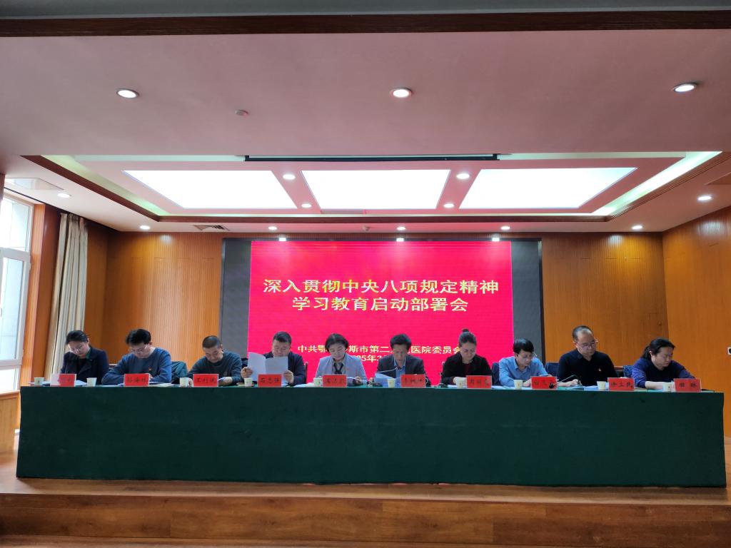 2025年3月24日,市第二人民医院党委召开深入贯彻中央八项规定精神学习教育启动部署会议。会议由党委书记温洁凯主持,医院全体党政领导班子成员、环节干部和全体党员参加了会议。
