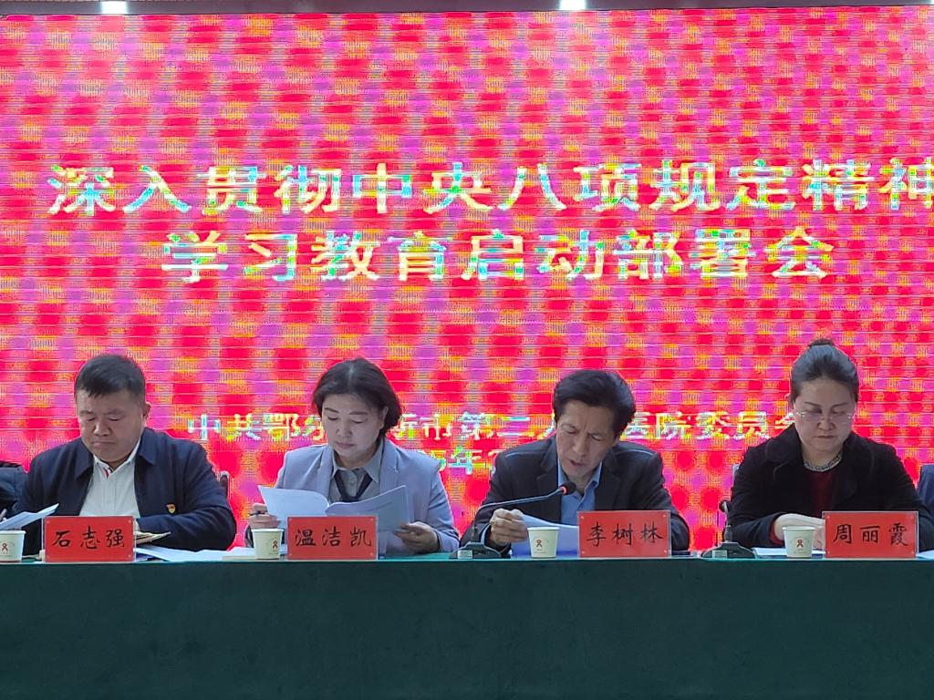 会上,医院党委副书记、院长李树林同志传达了中央、自治区党委、市委、市卫健委关于开展深入贯彻中央八项规定精神学习教育相关文件和会议精神。
