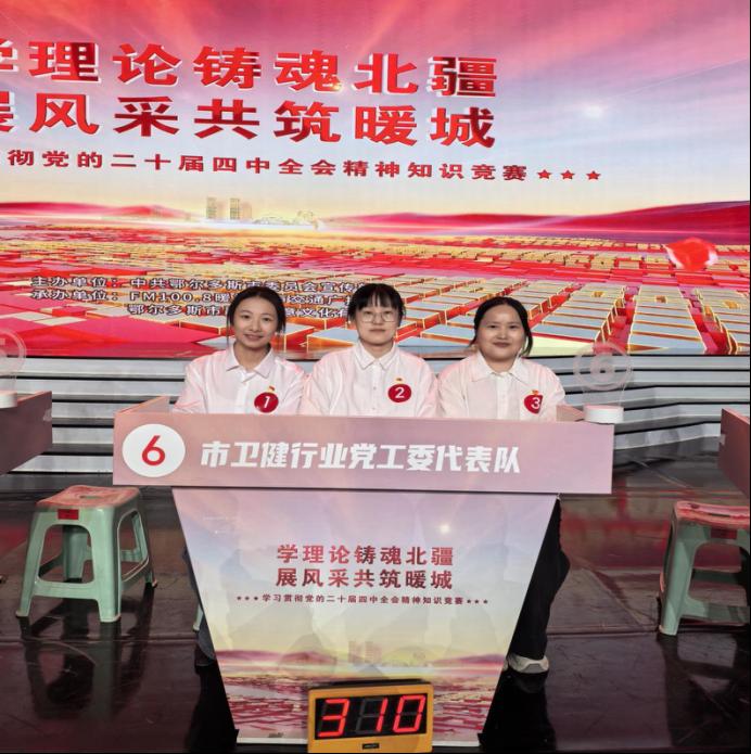 2025年11月21日,鄂尔多斯市学习贯彻党的二十届四中全会精神知识竞赛成功举办,我院职业卫生科党员郭玉娇作为市卫健行业党工委代表队选手,与队友密切配合、沉着应战,助力团队荣获二等奖,充分展现了我院党员干部过硬的理论素养和昂扬的精神风貌。