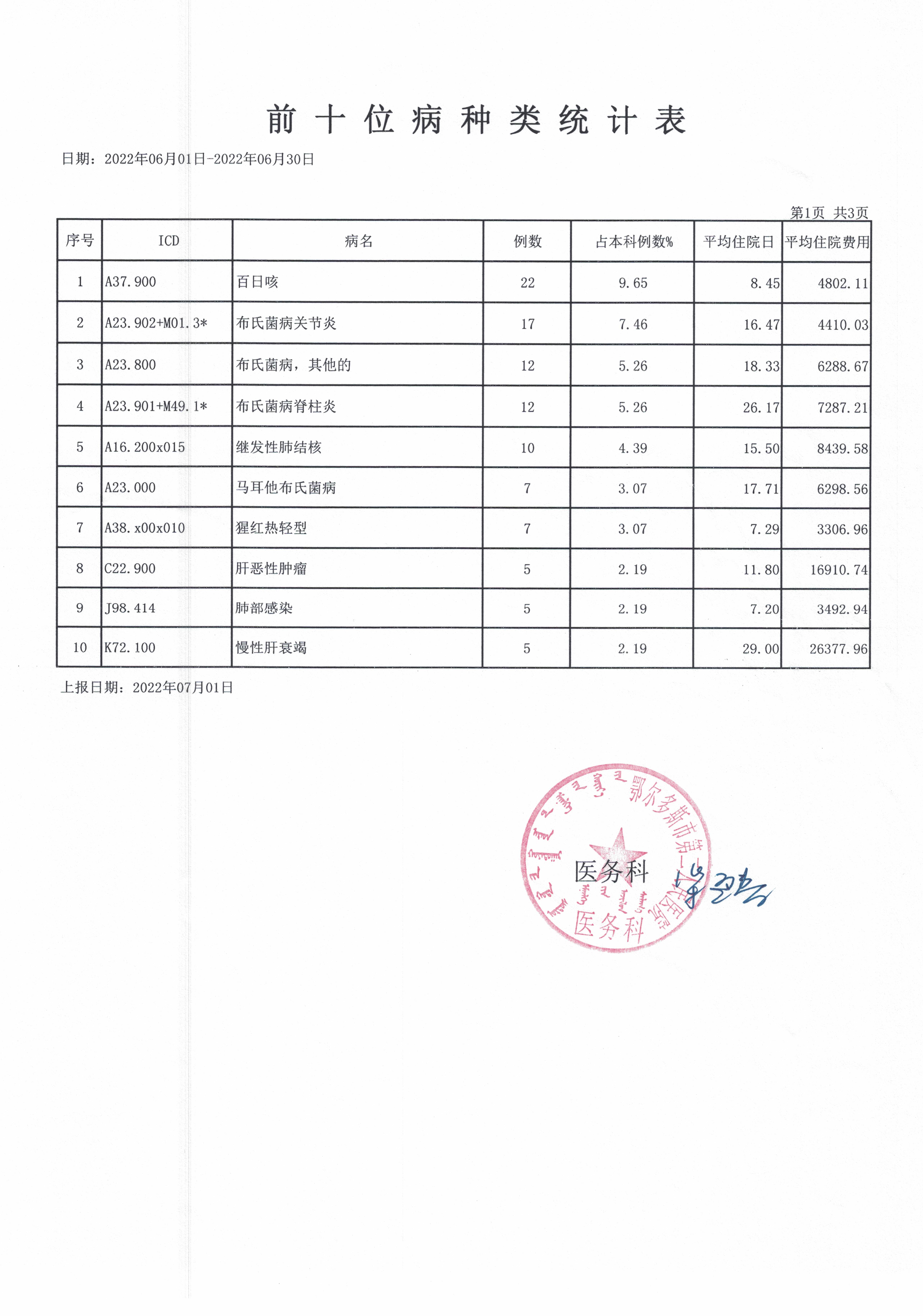 前十位病种统计表